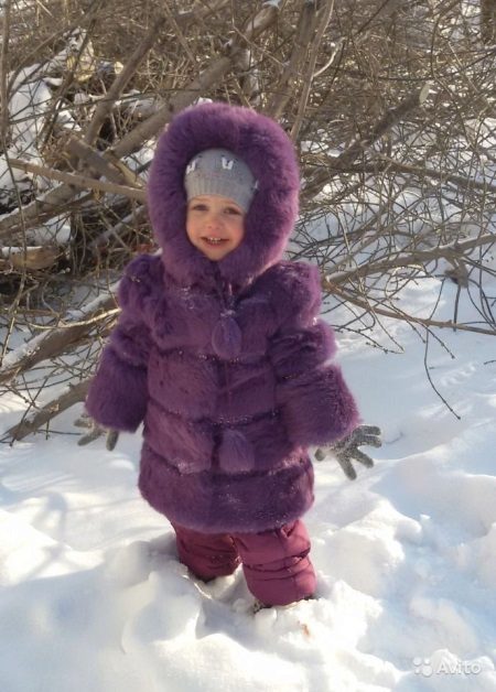 There is one significant limitation connected with the ease of the fur structure: due to the “weightlessness” of rabbit fur and mezra, the finished product is not intended for use in severe frosts: after a while, a child in such a fur coat will feel uncomfortable on the street. Therefore, if you plan a long stay in the fresh air at serious freezing temperatures, the owner of such a fur coat should be additionally equipped with a warm jacket or knitted sweater.