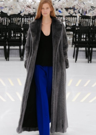 Long coats have always been considered a sign of wealth - they look luxurious. But, in addition to the visual component, it is still the warmest item in the wardrobe. Therefore, in the fierce winter without a fur coat length of the floor can not do. And also it is useful for ceremonial exits to throw on evening and cocktail dresses.