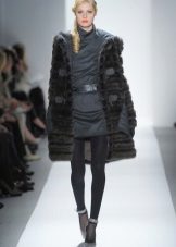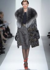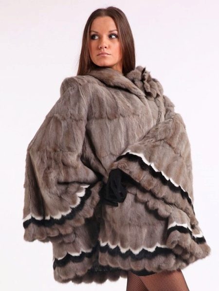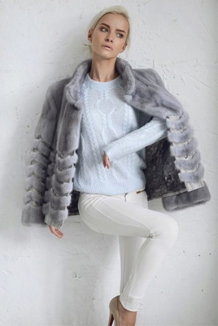 At one of the Kirov factories, this amazing mink sapphire jacket was born. We could not pass by this model, because it is beautiful. Silver shuttlecocks with interesting geometry surprisingly clearly follow the decor lines and blend perfectly with the straight silhouette. This form of collar is now gaining popularity, so this model will remain relevant for a long time. Mink goes well with the skin that was used for the inserts.
