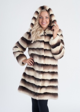 Among the models of fur coats, one can find both the most popular models of straight cut and original models of fur coats - a poncho or trapeze. Some products have unusual rounded edges, combine several types of fur. Fur coats with a hood or a stand-up collar are found; the sleeve can be a standard length or 3⁄4.