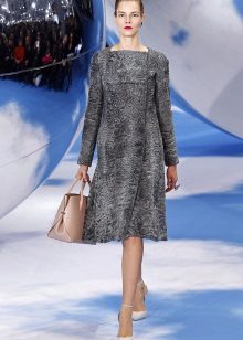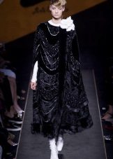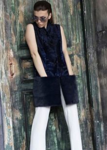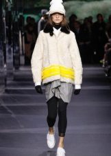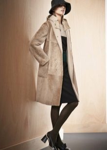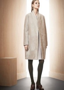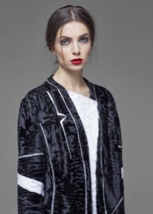 - A delicate white swakara fur coat is perfect for confident and elegant women. A straight classic cut, three-quarter sleeves, a round neckline without a collar, large patch pockets with a clear geometric shape - all this gives a concise and strict lines. A length just below the knees effectively stretches the silhouette. This option, complemented by a light dress and contrasting black shoes, is suitable for going out, theater, a business meeting.