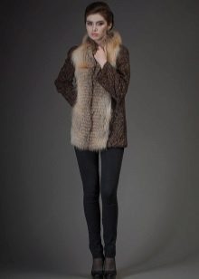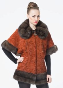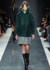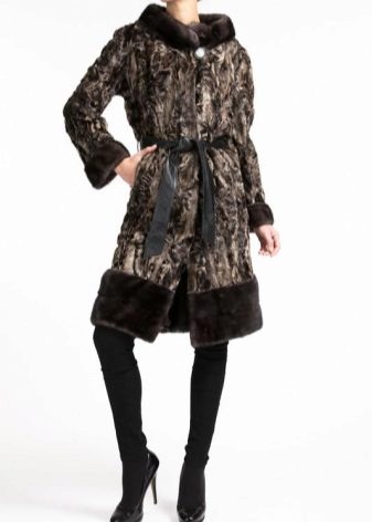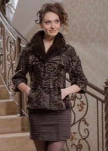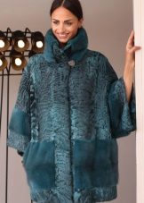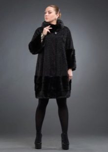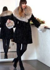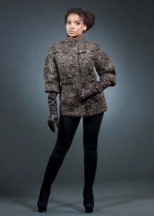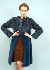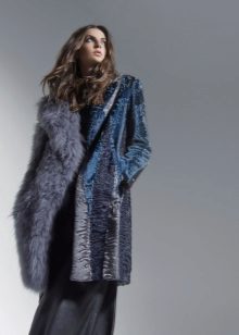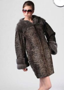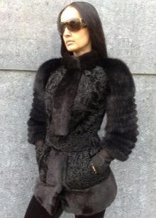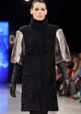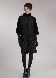 The combination of jacket fabric on the sleeves and the upper part of the fur coat with astrakhan fur looks fresh and extraordinary.