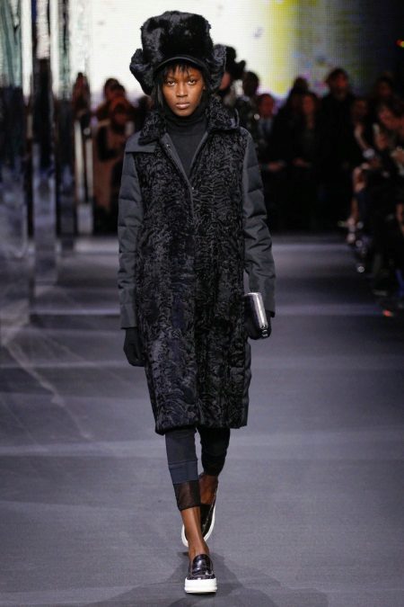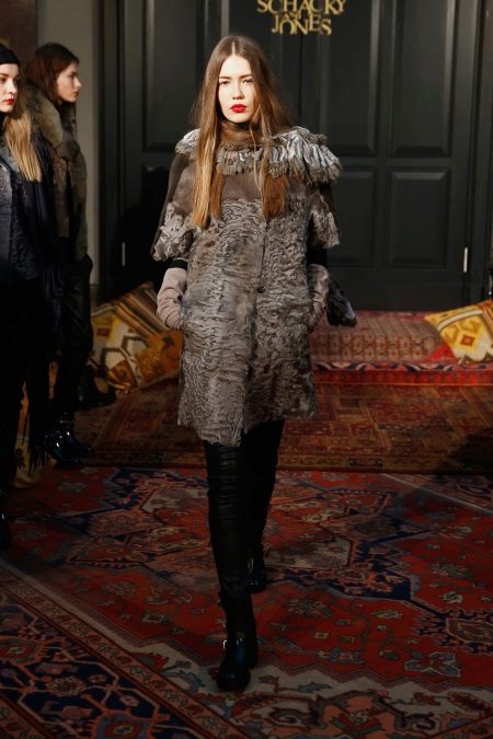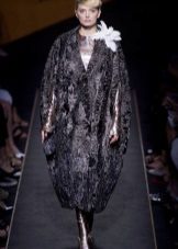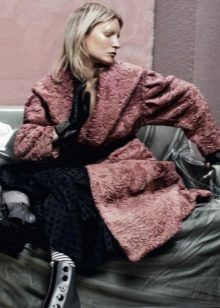 Oversize models made from astrakhan fur look interesting. Originality and freedom characterize this image of a fur coat.