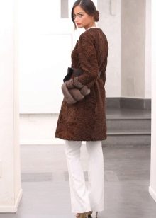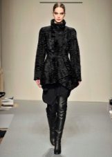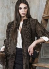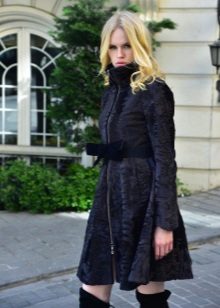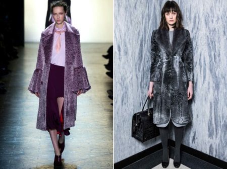 Another alternative for fur coats was the model of a coat made of astrakhan fur. Such coats are mainly designed for the off-season, but there are also winter options on a warm lining.