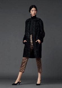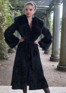 A fur coat from karakulchi is selected and worn taking into account the rest of the wardrobe and it is a universal outerwear. All classic things are suitable, as well as jeans, tight tights, dresses and skirts. The main desire of the rest of the clothes is to emphasize the elegance of outerwear, in this case astrakhan fur coats.
