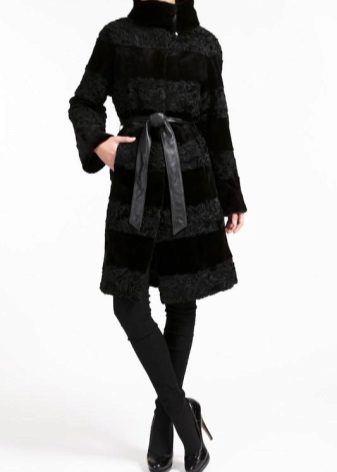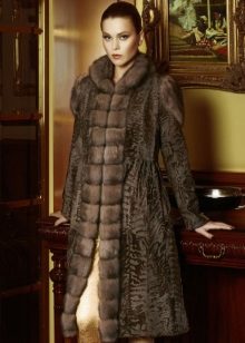 Furs of karakul in combination with inserts or decoration made of astrakhan are gaining more and more popularity. The combination of karakulchi with other furs is also at the peak of relevance. So, the model of a straight cut to the knee length made of astrakhan can be combined with the decoration of the collar, cuffs and sides made of mink, sable, arctic fox, fox, etc.