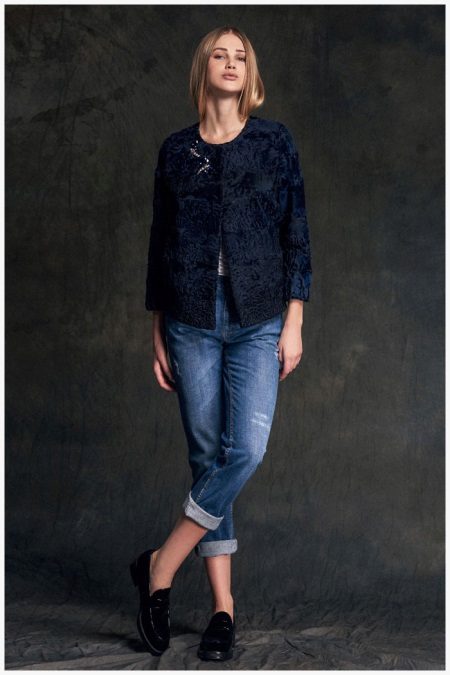 - Stylish fur jacket or short fur coat made of blue karakulchi in the Chanel style will become an indispensable wardrobe of a young and romantic girl. The ultra-short length of the jacket allows you to combine this model with any things - jeans, pants, skirts and dresses. A slightly shortened sleeve gives the product the appearance of outerwear. For everyday wear, ideal for fall and warm winters.