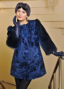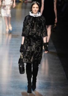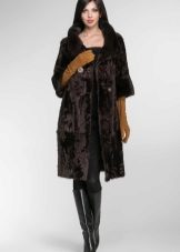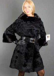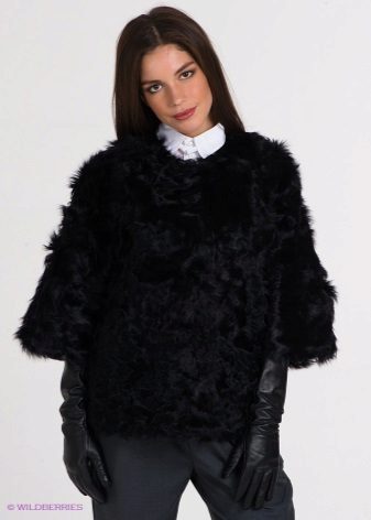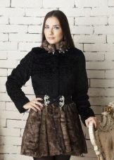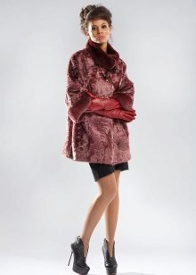 A short fur coat with sleeves ¾ is suitable not only for auto-ice, but also for those who like to get out to events. A deep-colored coat with a decorative large button on the neck does not require bright combinations.It is enough to put on a short black dress and long leather gloves. The short length of the clothes allows you to put on high boots or boots.