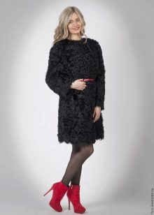 Particular attention should be paid to shoes and companion things such as hats, scarves, gloves. Leather is always suitable for any fur product, this applies to belts and gloves. You can choose a hat, fur, knitted, knitted, the main thing is to combine style with the image and not contradict it. If the coat has a small collar, then the scarf can be worn both on top and under the product. If some types of fur practically do not accept shoes on a flat course, then the goat is a rather versatile material. Depending on the model and image, it can be worn both with shoes and ankle boots with a heel or platform, and with boots or boots on a flat stroke.