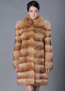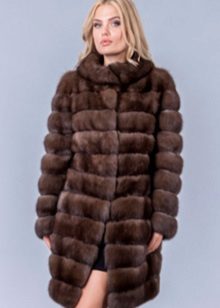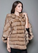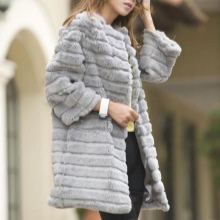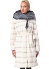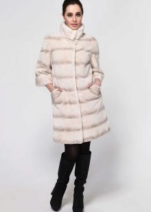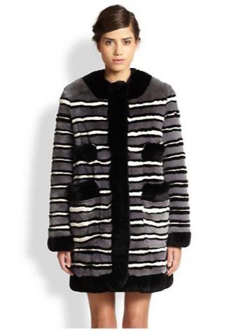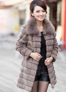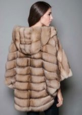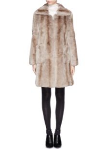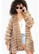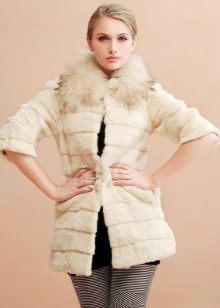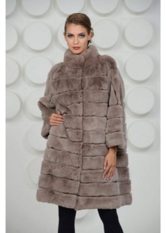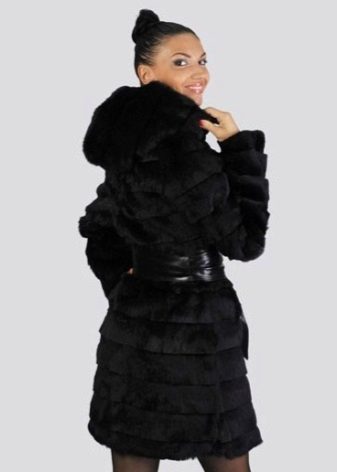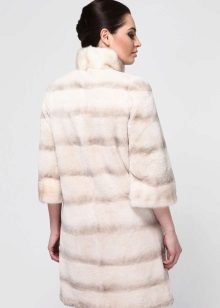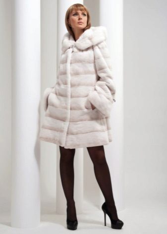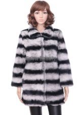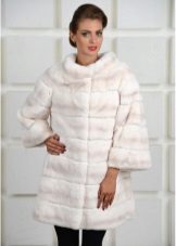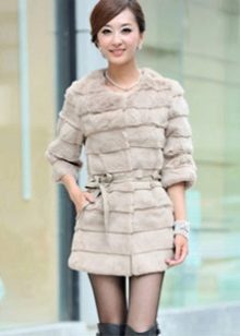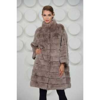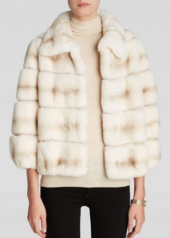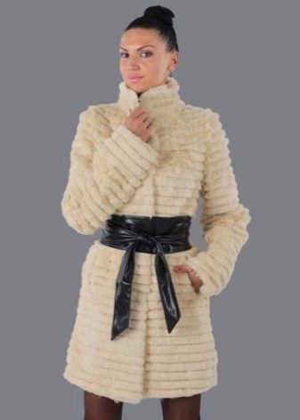 The fur coat cross from a rabbit is sewn from strips of fur located horizontally. Fashion designers can enhance the effect of dividing strips by cutting them off. Such a product from snow-white rabbit fur looks especially attractive.
