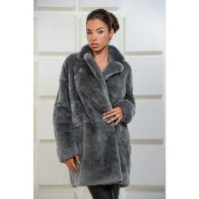 Sheared fur coats are a current trend in recent years. A soft, evenly short pile that resembles plush or velvet to the touch does not weigh down the item and has a luxurious sheen. Sheared rabbit fur coats perfectly tolerate all types of staining and do not fade during wear, they can be worn even longer than usual.
