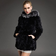 Pretty elegant rabbit short fur coats of a french style of a direct silhouette with a stand-up collar. A rabbit fur coat with a hood is very practical, it is not necessary to look for a suitable hat for such a product, just put on a hood and your head is warm. An existing collar can replace a scarf, a turn-down collar can be lifted up, protecting itself from a piercing wind. Moreover, the collar can be sewn from another, more expensive and fluffy fur, for example, silver fox. A rich fur trim can go along the bottom of the product.