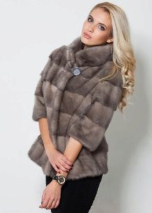 A neat straight jacket of azure orylag will not leave indifferent any fair sex - narrow transverse fur stripes, a stand-up collar, sleeves shortened to the elbow and incredibly soft velvet fur will create a truly luxurious and incredibly attractive look.