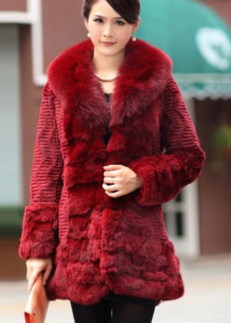 Rabbit fur is easily dyed, and the natural luster after this procedure will not be lost. The intense and romantic color of Marsala is deep and neutral, it looks luxurious even in rabbit products. A muffled burgundy fur coat with a brown undertones will give confidence to its owner and convince others of its irresistibility.
