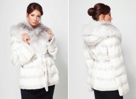 Coffee, smoky and ashy are the most common colors of rabbit fur coats. Products made from Rex rabbit fur are most often black and blue, and from ogilag - red-brown (under the beaver) and white-gray (under the chinchilla). Fur coats made of white or cream rabbit are very popular, often such products compete even with luxurious mink. A white fur coat can be a great addition to the image of the bride, if the wedding is planned for the cool season.