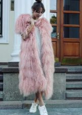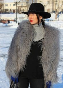The most top-end images of the last season is the "combination of incompatible". And a fur coat from a llama fits perfectly into such a style, if you combine it with tight trousers and sneakers or with a voluminous long skirt and boots in grunge style. Fur coats from powder llama look very impressive. It can be worn with the same tight pants, rocker boots and complement the look with a hat.