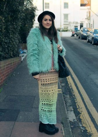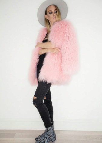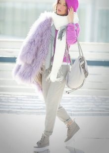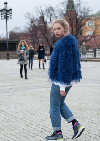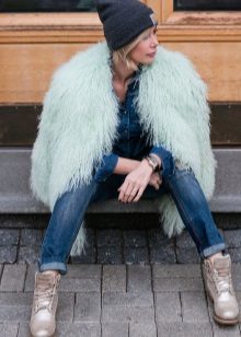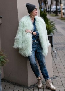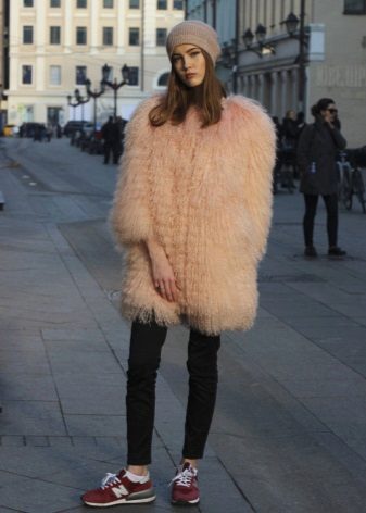 In principle, with the right selection of style elements, such a fur coat can be combined with anything, especially in the coming season. But stylists still recommend staying on tight trousers and similar silhouettes. From shoes, boots with a small wide heel or boots made of matte leather are perfect. You can also wear a skirt with such a fur coat, but here you should already be careful. This combination is not suitable for everyone and can make the image heavier.