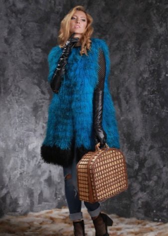 - Fur coat vest. Such a model, as a rule, has the same straight cut and a length just above the knee, but a greatly shortened sleeve. Of course, such a model is not suitable for wearing in winter, but in the autumn period it will add unusualness and warmth to your image.