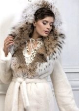 Three-quarter sleeve options must be complemented with long, elegant gloves. Shoes are preferable to choose on an average heel, a high hairpin will not look harmonious, as well as a solid sole. The ideal headdress (if it is, of course, necessary) is a fur hat made of identical fur, knitted in this case is unacceptable. The option with a hood looks great and without a hat.