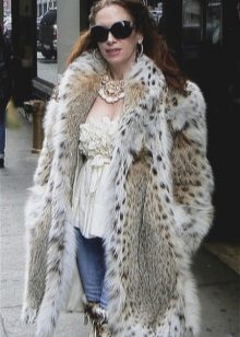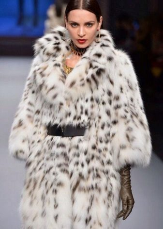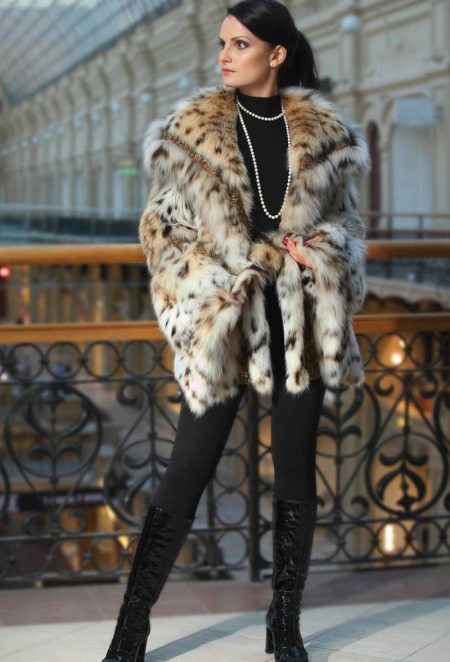 If the fur coat is entirely made of lynx, then this makes certain demands on its style: it must be extremely simple so that this chic fur flashes with all its colors. The comfortable model of a trapezoidal silhouette elegantly looks. This season, stand-up collar, shortened sleeves, asymmetric cut are in fashion.