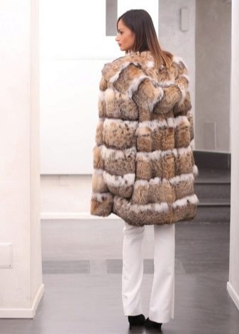 The most valuable part of the lynx is its abdomen, while on the back the pile is shorter. Therefore, elite fur coats are sewn exclusively from abdominal fur, more economical products from the whole skin, however, fur from the abdomen will certainly adorn the most prominent place - a collar or chest. The same is true when decorating hoods: the more valuable fur part goes to the outside, the rest to the inside.
