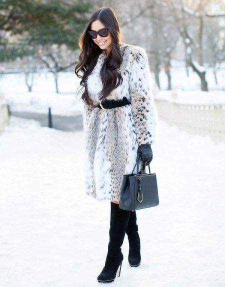 Putting on such an extraordinary thing as a fur coat made of lynx fur, you need to carefully select accessories. After all, such a bright model harmoniously looks only with certain, calm, clothing colors, best of all plain.