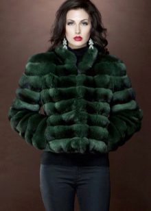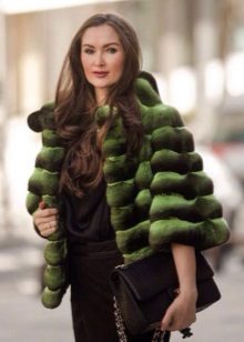 A green fur coat is very rare in the collections of famous designers, but is in great demand. This color can be called original, because few animals have this color. The green chinchilla coat looks flawless and bright. It can be combined with black or white clothing.