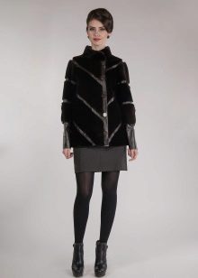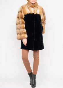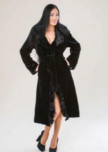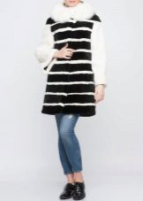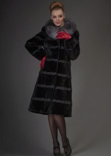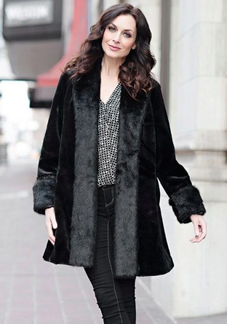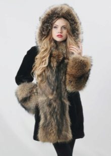 A long black coat in combination with cuffs and raccoon sides is an excellent everyday option. It can be combined with business and casual clothes, for example, skinny black jeans and a shirt in a black and white pattern.