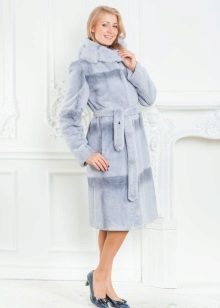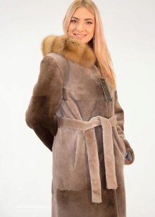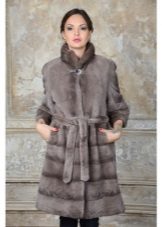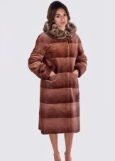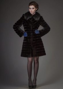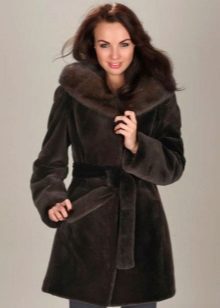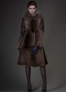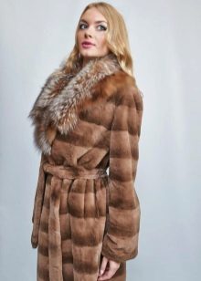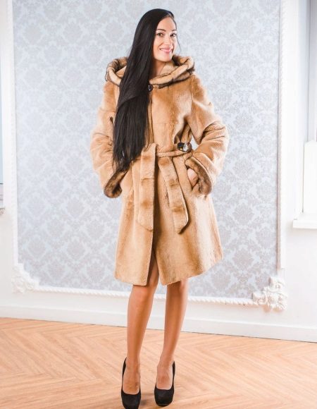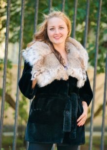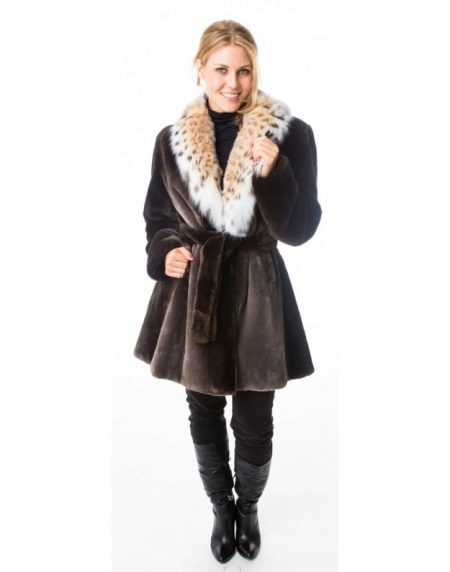 A classic brown beaver with a flared hem and a belt is another successful model for every day. A bright accent on such a fur coat is a lynx collar. Due to the short length of the product, you can safely wear high boots with it, and jeans or trousers with a high neck blouse will complement the image.