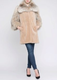 The combination of a beaver with another fur is a rare occurrence, but if fashion designers take this step, then most likely the coat will amaze the imagination. Bleached Canadian beaver combined with large fluffy fox fox cuffs and collar. To complete such a luxurious look is snow-white trousers, jewelry or jewelry "in gold", as well as a clutch in the tone of fox fur.