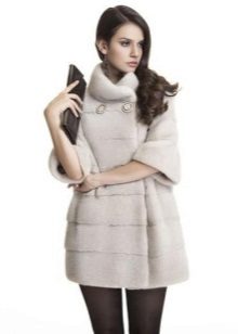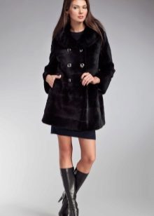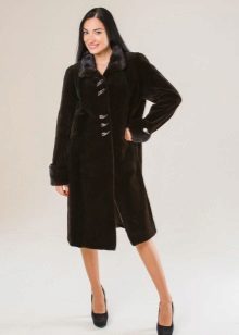 Very often on the shelves you can find fur coats with a stand-up collar, on which there are most often large decorative buttons. There are models with hoods, which are lowered looking like a collar.