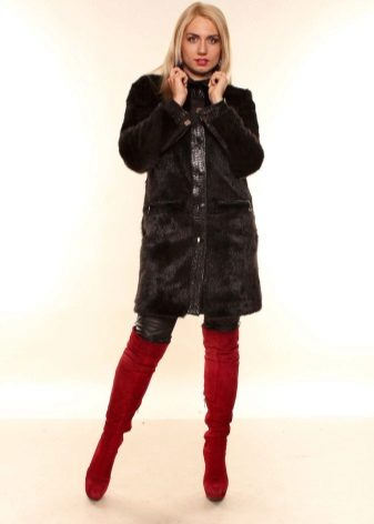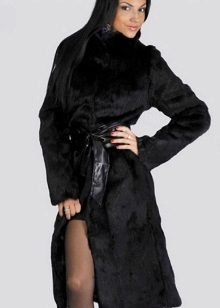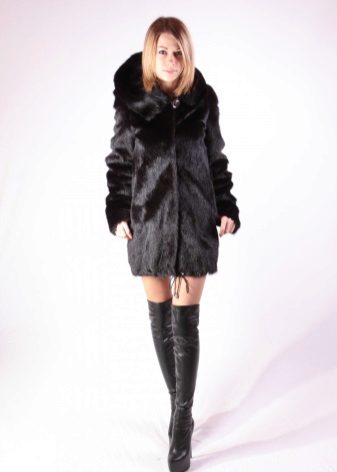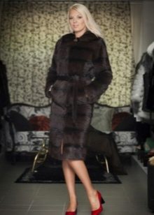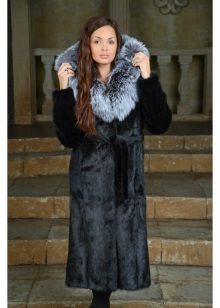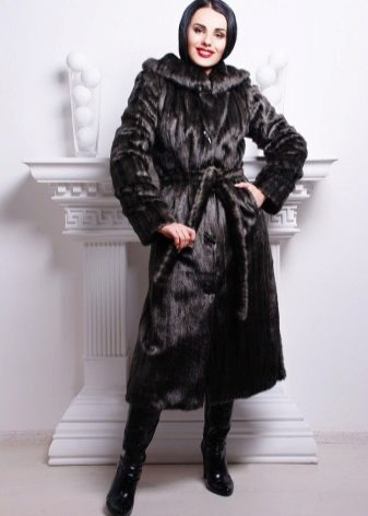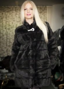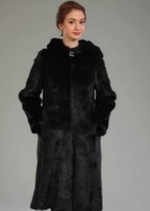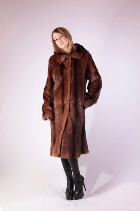 - A fur coat from a groundhog longer than a knee is sewn from fur skins arranged transversely. Shiny smooth fur looks no worse than mink. Full length straight sleeves will protect your hands from the wind, and an elegant stand-up collar decorated with a shiny fastener will help keep your owner's throat and neck warm.