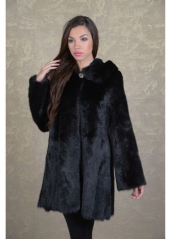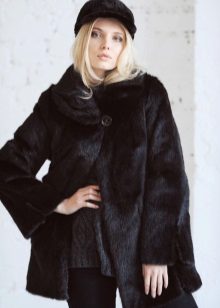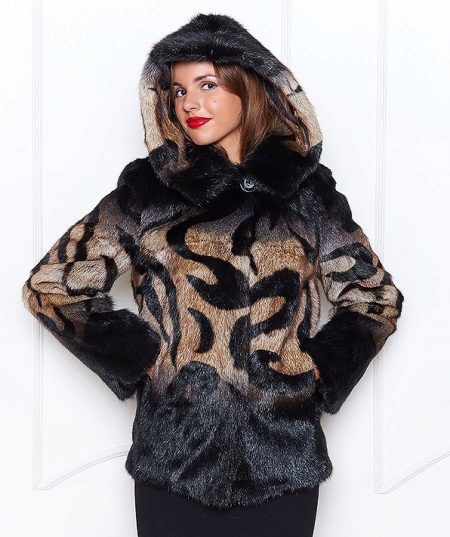 The original short fur coat of tinted groundhog will attract the attention of young girls and avtolyedi. This unusual product is complemented by a full-fledged hood and decorated at the top with a large shiny button.