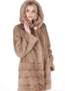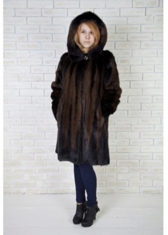 The classic straight style of a marmot coat attracts with an elegant chestnut hue. The wide hood can be used for its intended purpose, but you can leave it lying on your shoulders, straightening it like a shawl. If desired, such a fur coat can be worn with a fur belt that emphasizes the waist.