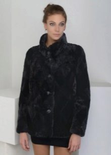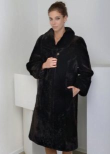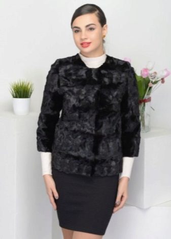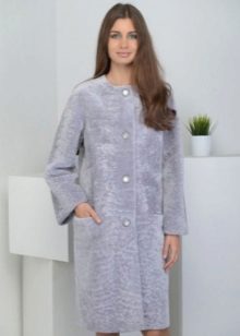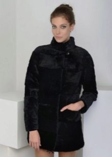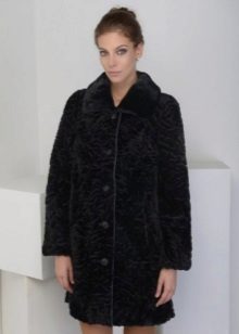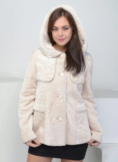 The most delicate image of a young girl, created thanks to the velvety structure of Astragan.Additional elegance along with the color of baked milk and decorative inserts that imitate pockets. Buttons tone on tone do not distract attention, performing a practical function. This fur coat factory "Kalyaev" is suitable for young lovers of feminine outfits, as well as modern avtolyedi.