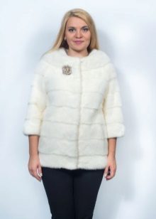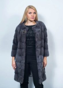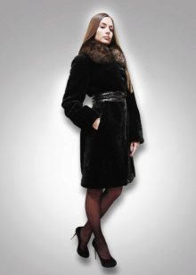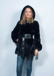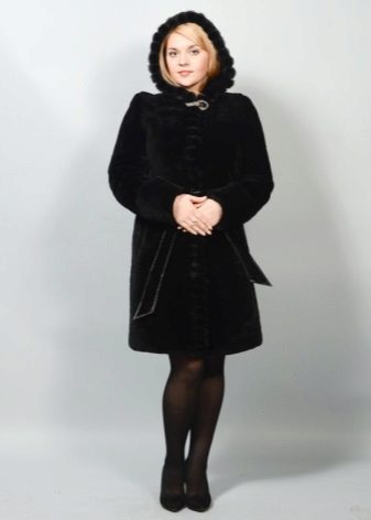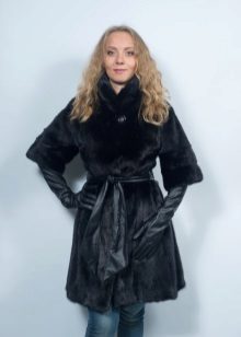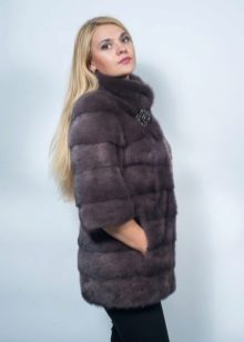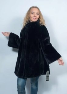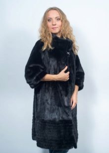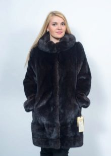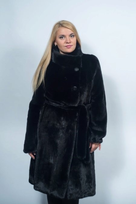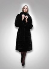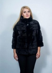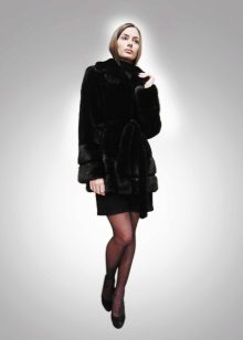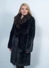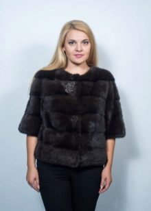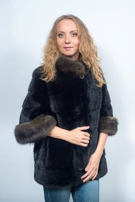 - Another chic option from a mink-cross. Short short fur coat with a free cut trimmed with elite sable fur. Such a model is perfect for a business auto-lady who likes to demonstrate her status. The decor element looks particularly impressive on flared sleeves three quarters long. The deep black color of the mink sets off the natural color of sable fur.
