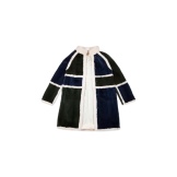 The next model of a women's fur coat looks even more interesting and original. It actively uses a geometric print, which is included in the top trend prints of the current year.