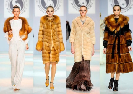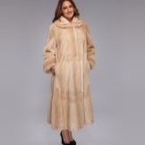 The most popular model from the Melkovo brand was a fur coat of actual soft beige color this year. As a material for her, fashion designers chose mink fur. The length of such a fur coat reaches the line of the knees of its owner. It looks interesting enough due to the presence of a transverse design that makes this product as feminine as possible.