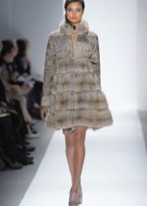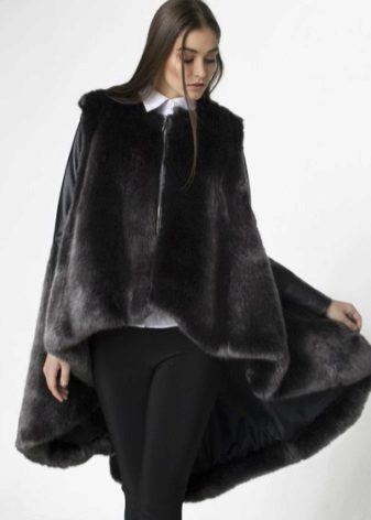 - The bell shape allows you to create a fairly feminine image. The fur coat has a fitted silhouette and a trapezoidal cut, which is effective in combination with a romantic short dress.