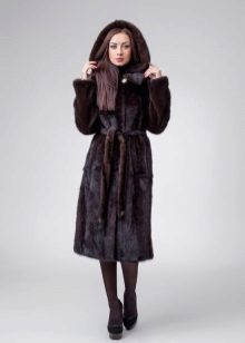 Long fur coat model can be worn with or without a belt and hood. The product is designed for cold winters and windy weather.