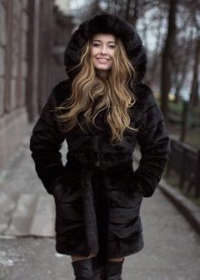 Short coat It looks fashionable and mischievous. This is a convenient model of a classic fur coat, adapted for auto-ice. Its length is not lower than the middle of the thigh. The fur coat cannot be called voluminous. Typically, the model of such a fur coat has a flared bottom.