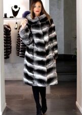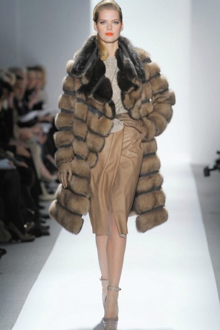 Also interesting are coat models with fur inserts sewn according to the principle of transverse cut. Although the fur coats will still be called transverse, even if the stripes on the model are located "herringbone". In addition, it can be models from strips with long-haired or with trimmed fur. Variants of fur can alternate. Each type of fur has its own texture, and transverse stripes can start from the waistline.