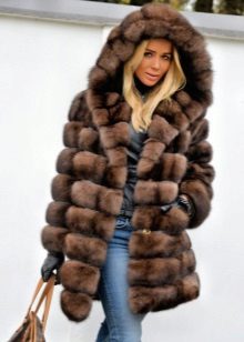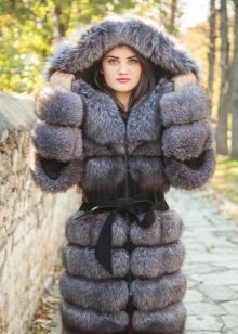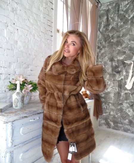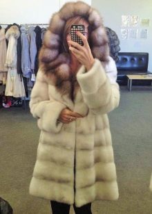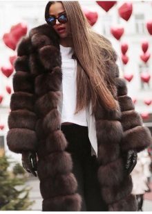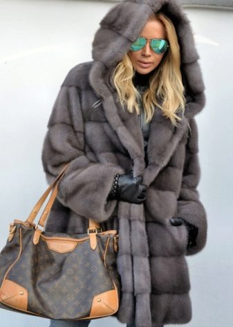 When choosing a fur coat across, you need to pay attention to how it sits on the figure. Usually there are no complaints. The model can be with a volume hood or on a belt. Thanks to the successful tailoring of the fur coat, the fur shimmers very beautifully, visually does not place accents along the line of the figure. A fur coat with a transverse cut looks more luxurious than a longitudinal model.