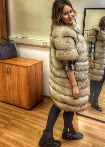 Arctic fox coat or models from silver fox look like the most fluffy in volume. At a cost these are more expensive models. The most affordable in the price range are muton cross coats. But the most popular are the mink coats of the cross, although this fur is not the warmest.