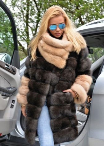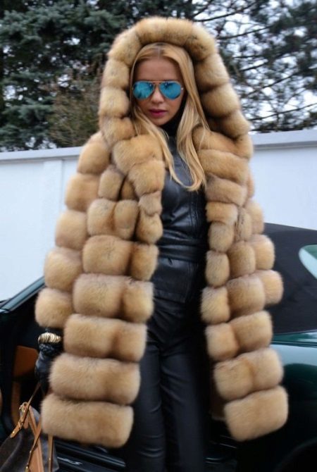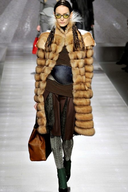 With the onset of the cold season, fur coats, as always, remain in fashion. The peculiarity of such fur coats is in their cut. The product is a transverse strip of fur. Different may be the length and longitudinal arrangement of the strips. For sewing, different fur is used. But in general, fur coats are difficult to confuse with other models.