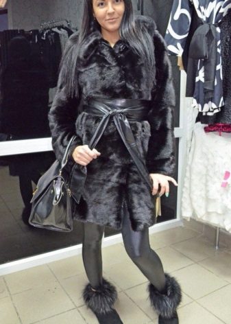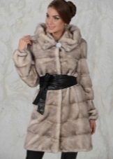 When choosing this thing, consider the structure of the fur. The belt is only suitable for products made of thin soft fur (mink, rabbit, chinchilla): it will create nice folds. Thick lush (arctic fox, silver fox) or coarse fur (wolf) on a fur coat of a straight cut will look out of place and carelessly. There are also fur products with an inner belt, on the drawstring. Again, these are options from soft smooth fur.