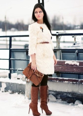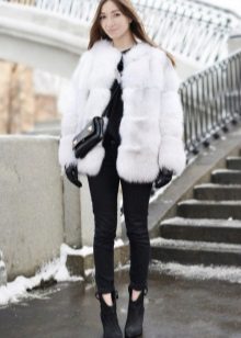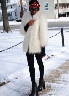 A white fur coat requires its owner a responsible approach to image formation. White boots can confidently be excluded from the list of available items. For white fur, you can choose brown, gray, black and beige things. Accessories may also be considered in which there is a combination of white with other shades.