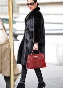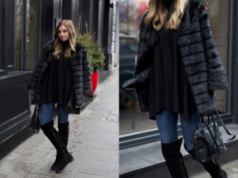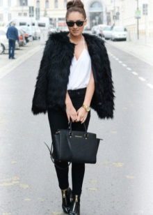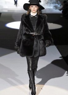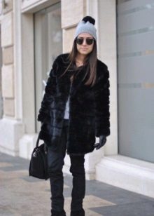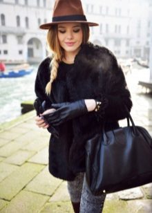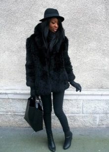A black fur coat is best combined with black leather or suede elements. The images of total black always look interesting and by no means boring. A few bright elements will not hurt, but this is a matter of taste for every fashionista.