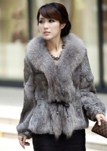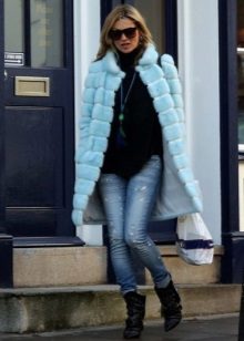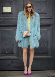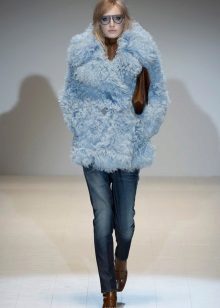 The fur of blue and sapphire shades can be combined with gray suede, this image will be light, laid-back, but very stylish.