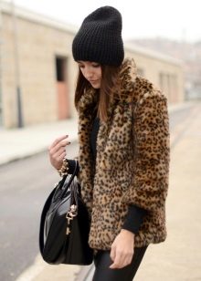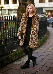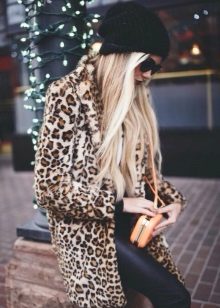 Leopard fur coats are best combined with black elements; you should not even consider other options, since a chic fur coat with an animal print can turn out to be vulgar.